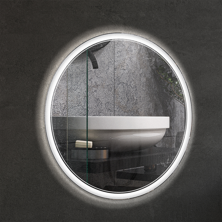 CRATER – дзеркало круглої форми з візерунком у формі подвійної смуги та з фоновою підсвіткою, котра зосереджена по контуру матованої рамки на краю полотна. Модель має лаконічний дизайн та ненав’язливе підсвічування, завдяки чому підійде для облаштування добре освітленої ванної кімнати.