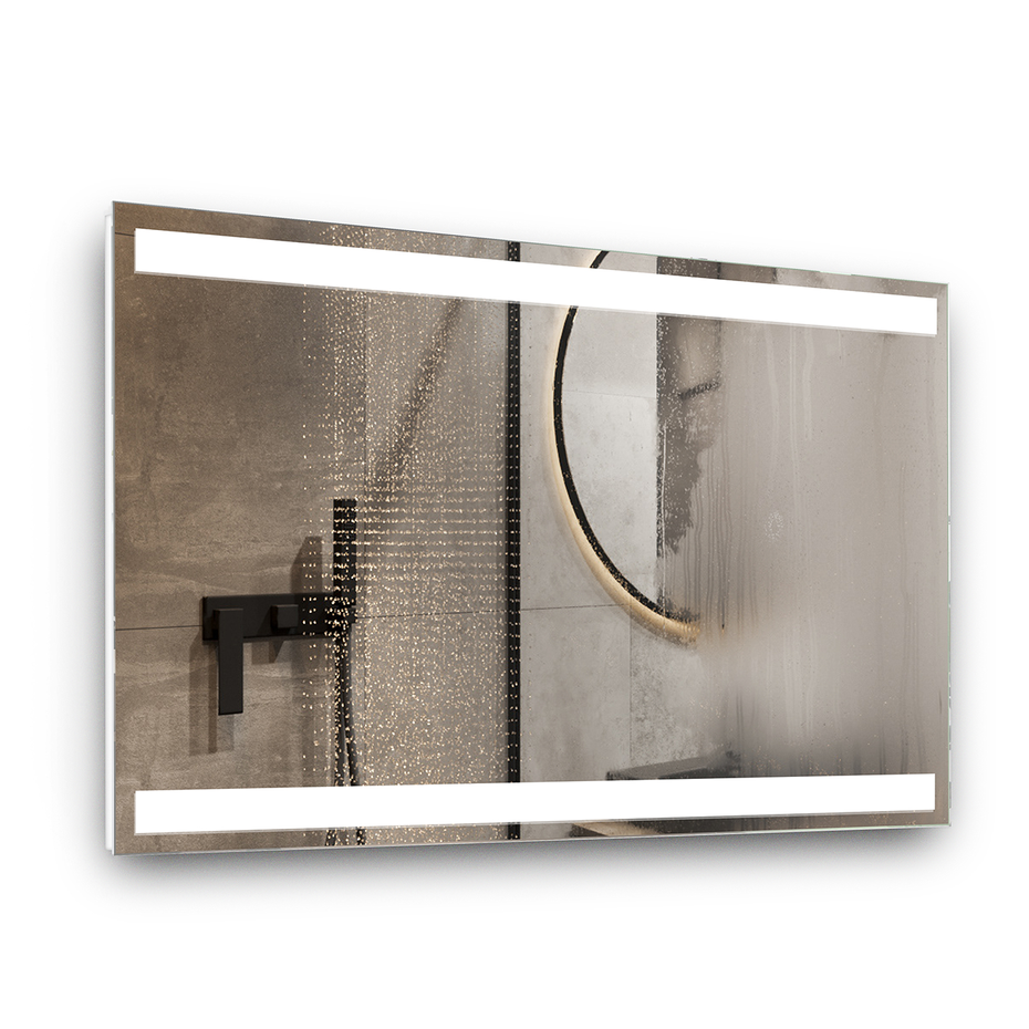 DILLON - прямокутне дзеркало із двома широкими паралельними смугами підсвітки зверху та знизу виробу. Фронтальна підсвітка дозволяє отримати достатню кількість світла навіть без великої площини візерунка.