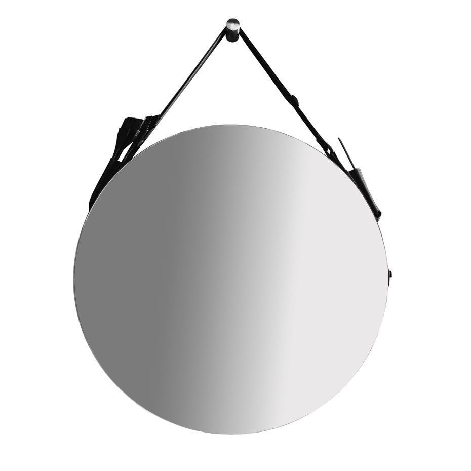 Наше дзеркало ідеально підходить під такий опис! В ньому немає нічого зайвого – тільки безрамне полотно на чорному, комбінованому шкіряному ремені.