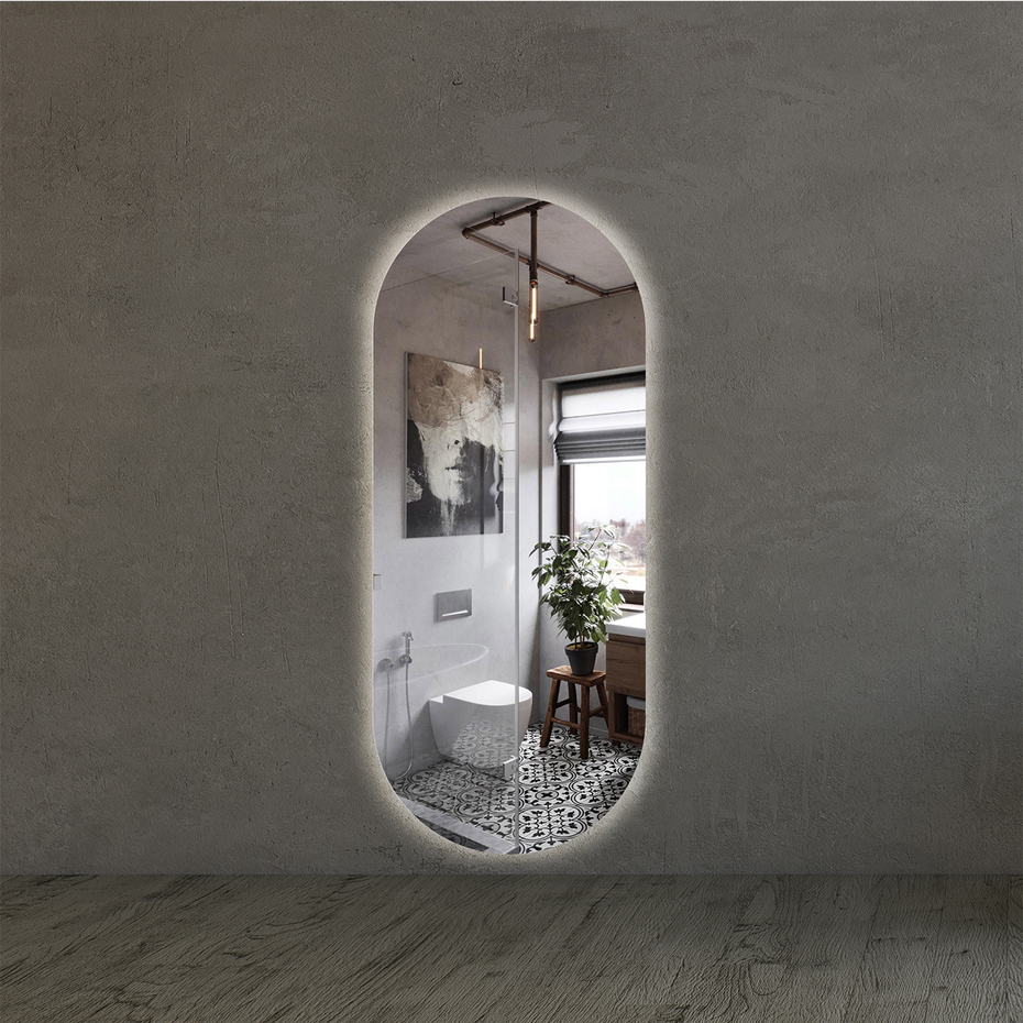 Ростове дзеркало MELISSANI популярної форми “стадіон” із фоновою підсвіткою. Модель виконує більш декоративну функцію, адже такий тип підсвітки використовується виключно як додаткове освітлення або інтер’єрна родзинка.