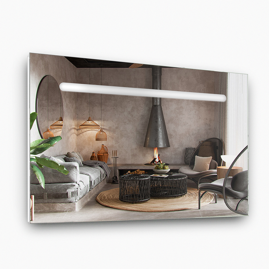 PLITVICE - мінімалістична модель прямокутної форми. Зона підсвічування неймовірно делікатна та проста: фронтальна підсвітка зосереджена у тонкій смужці, яка класично розташована зверху виробу, але при бажанні дзеркало можна розміщувати таким чином, аби візерунок знаходився із потрібного боку (при замовленні слід зазначити потрібну сторону).