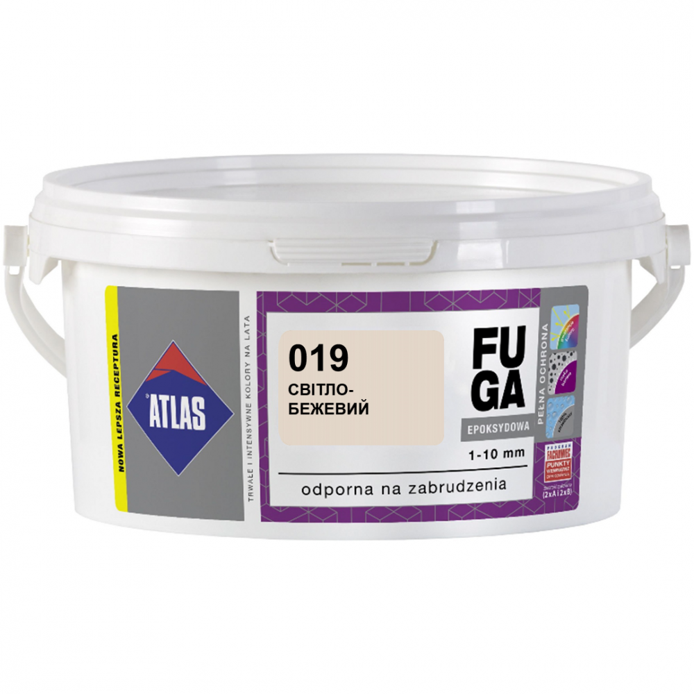 ЕПОКСИДНА ФУГА АТЛАС це маса для затирки швів нової генерації виняткової міцності і хімічної стійкості, призначена особливо для місць, схильних до інтенсивної експлуатації. Застосування епоксидної технології дозволяє отримати суміші для затирання швів з відмінною естетикою і параметрами, що багаторазово перевищують параметри традиційних цементних швів.
