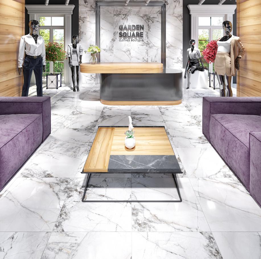 Природній керамограніт з природньою красою мармурового малюнку підкреслить лаконічність інтер'єру і створить атмосферу комфорту в житловому просторі.