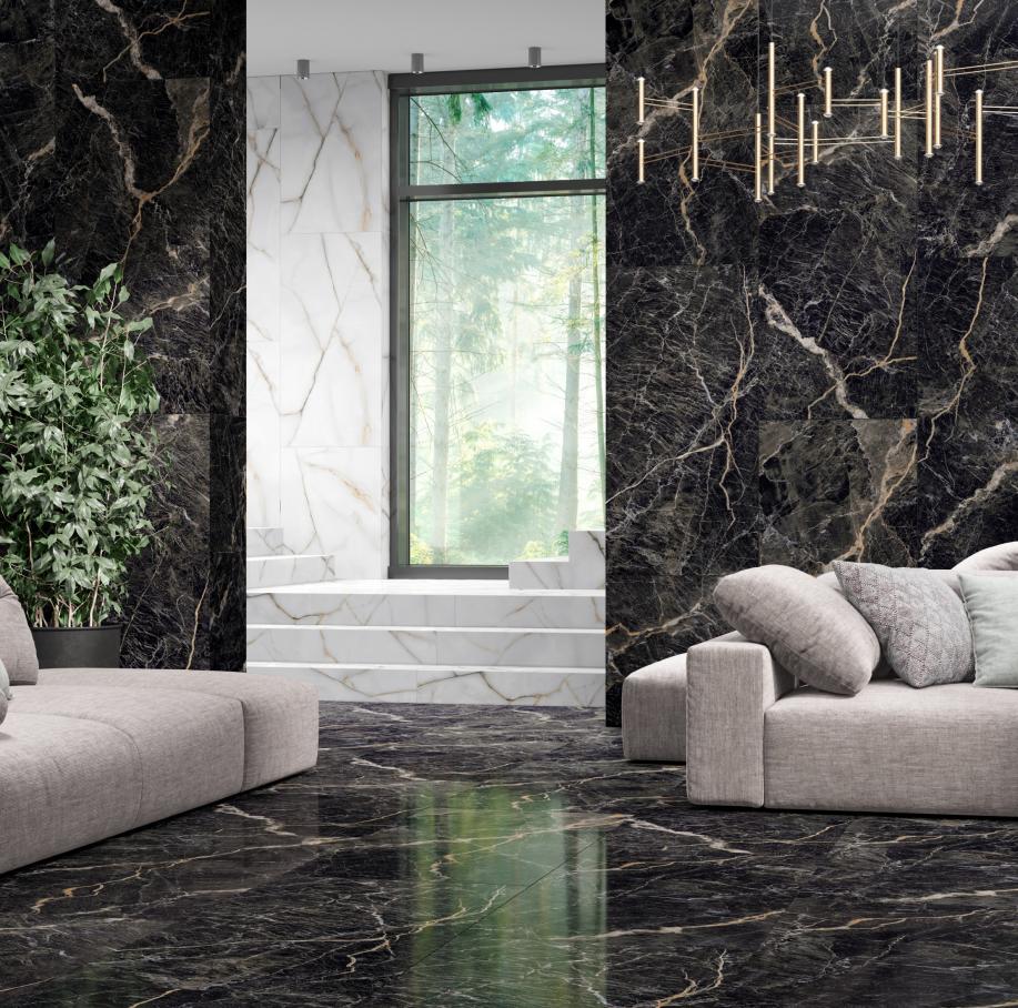 Мармурова текстура у поєднанні з глибоеим поліруванням надають інтер'єру привабливості та вишуканості.