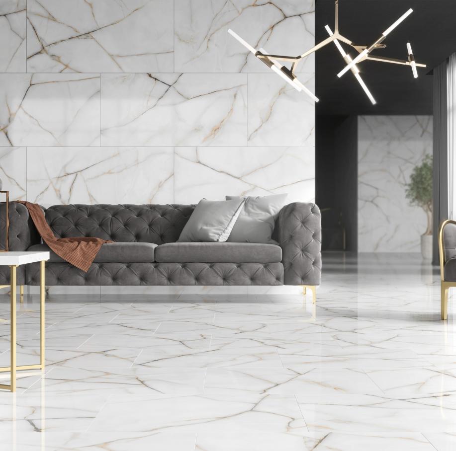 Білий мармур в поєднанні з полірованою поверхнею, це той момент, коли ти впевнений у своєму виборі.