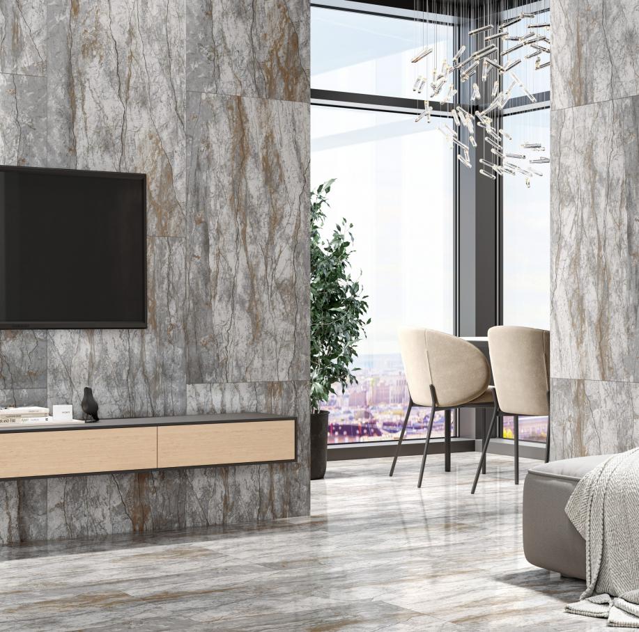 Темно-сіра структура старого мармуру з коричнивими та чорними прожилками пертворюють ваш інтер'єр у окремий вид мистецтва.