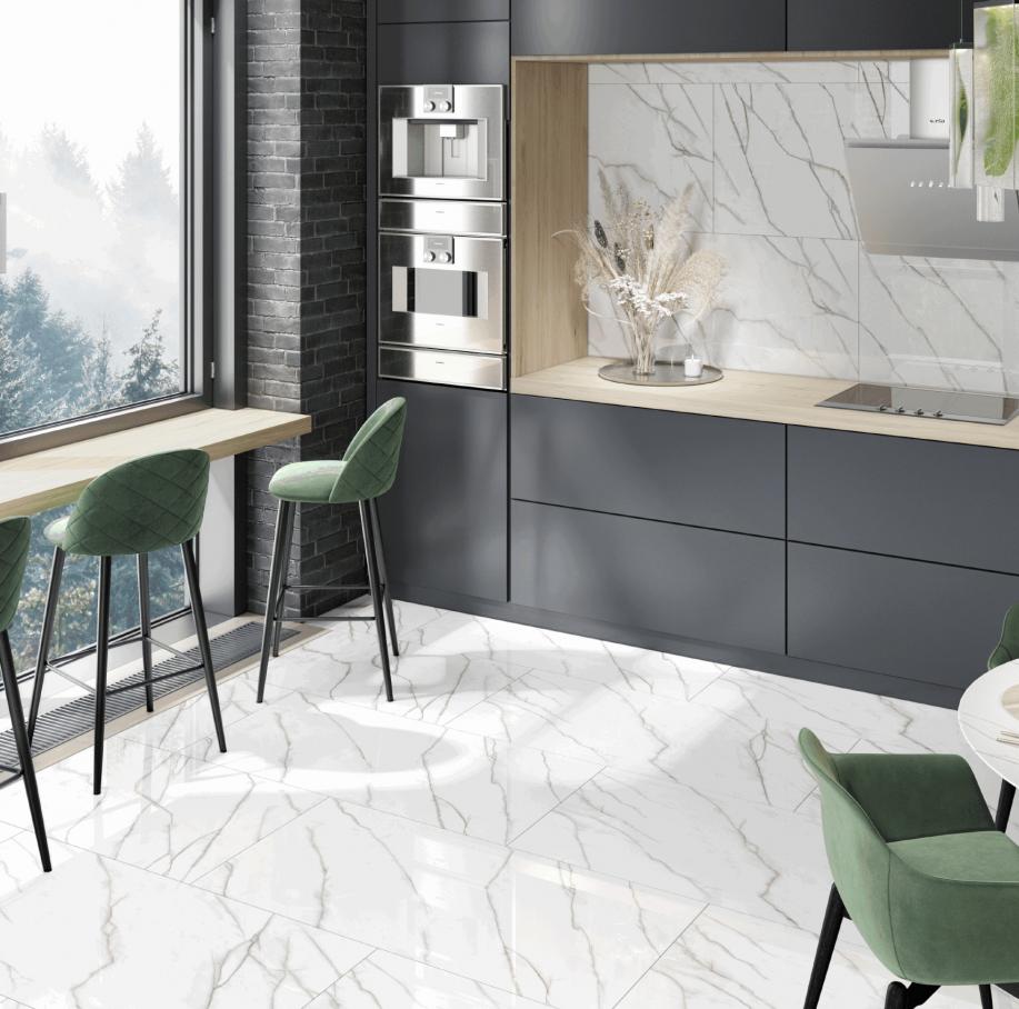 Найактуальніший мармур з тонкими прожилками та білою базою у полірованому виконанні.