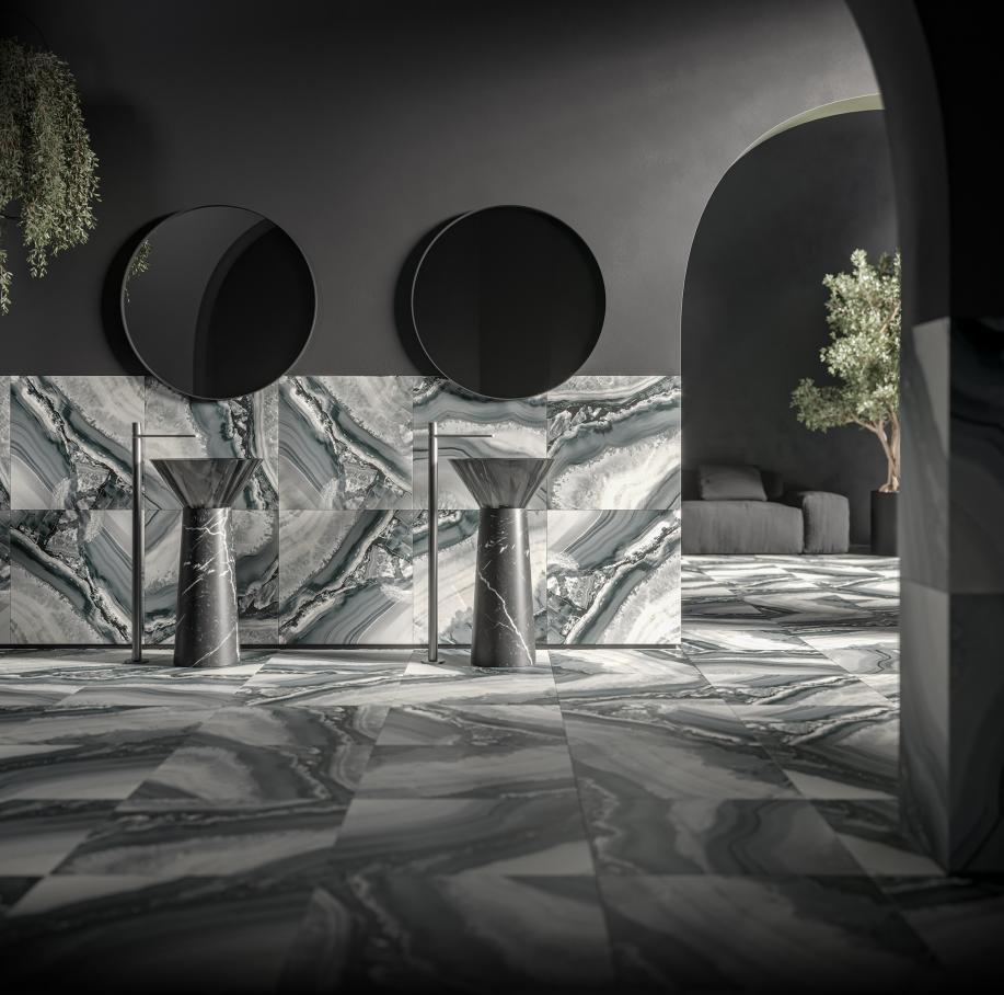 Яскравий онікс з синім підтоном підкреслить неординарний та творчий характер проету.