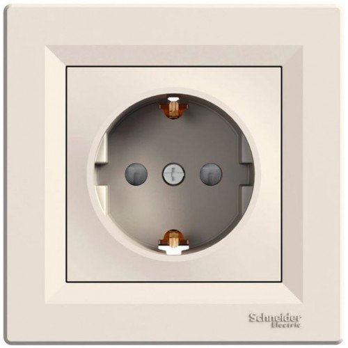 Розетка Schneider-Electric Asfora з заземленням і з/шторками кремовий EPH2900223